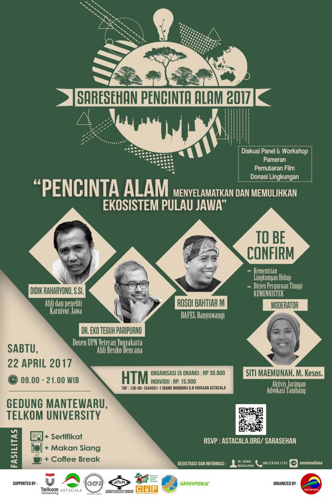 BANDUNG – Ratusan mahasiswa pencinta alam dan penggiat konservasi berkumpul di Gedung Manterawu Telkom University mengikuti diskusi penyelamatan ekosistem dalam acara sarasehan pencinta alam yang diselenggarakan PMPA (Perhimpunan Mahasiswa Pecinta Alam) Astacala Universitas Telkom, bertepatan dengan peringatan Hari Bumi yang jatuh pada 22 April setiap tahunnya.